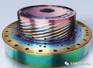 CromaPlus涂層的一大特點在于它豐富多彩的彩虹色。該涂層能夠在模具表面形成一層顏色非常漂亮的覆蓋層。這種色彩豐富的不粘涂層非常適合用于某些粘連性極強的模塑材料,比如橡膠混合物和熱塑性彈性體。在使用這種高硬度的涂層之后,原本因為鋼板與模具表面之間夾雜的硬質填充劑所導致的摩擦型磨損,或者因為鋼板與模具這對金屬間的摩擦副因表面凸凹不平產生機械咬合而導致的粘著型磨損,得到了大幅度的降低,改善了模具的表面粗糙度,從而降低了表面摩擦系數。